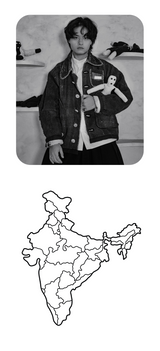 Tap the dots to learn more about where each component of the new Karigars Blouson originates from, where it travels, and the processes applied.