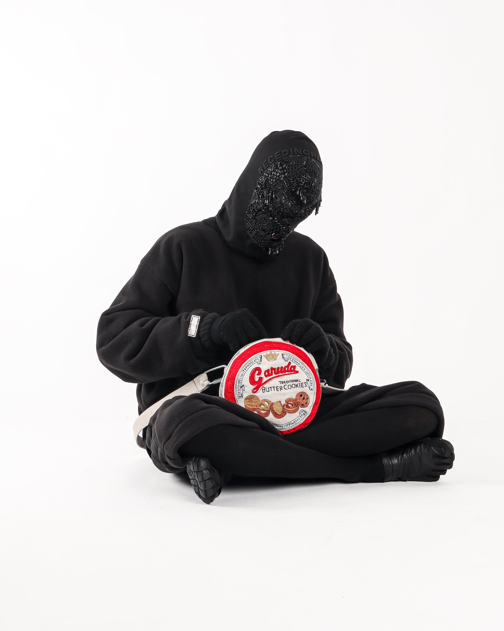 Hand embroidered (50 hours) danish biscuit box, whats inside? Sewing equipment? Anything but biscuits I'm sure.
